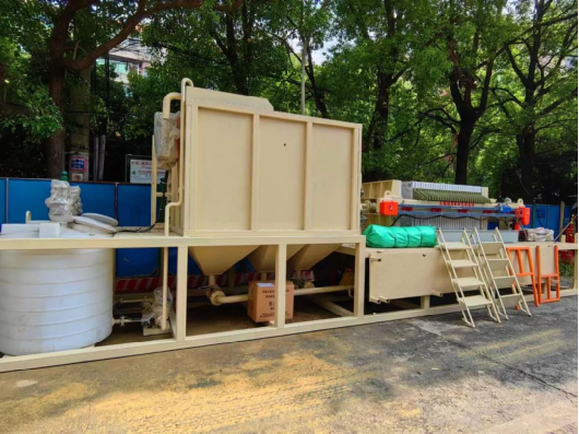 项目创新使用板框压滤机技术,使用滤布压紧板框,可有效分离水和固体物质,过滤有害物质。处理后的水,能变废为宝直接用于工程,同时泥浆变成固体状物质,便于运输和处理,既环保又能节省空间。
