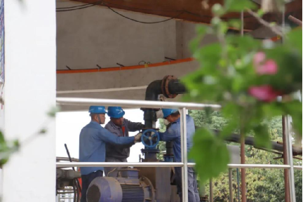 ▲ 运维人员正在维修配水井淤堵底阀 摄影:丁雅婷