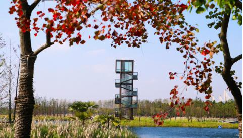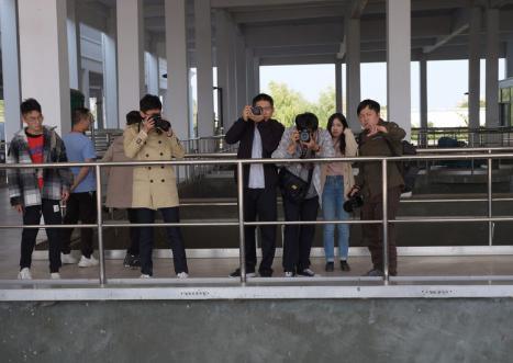 摄影爱好者在江东水生态公园进行摄影练习? 拍摄:肖佳法