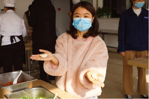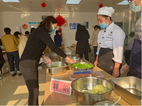 在餐厅厨师的指导下,大家制作了多种口味的饺子馅,学习花式手法包出了各式各样的特色饺子。同时,全员严格按照冬季疫情防控要求,佩戴口罩与一次性手套,确保食材安全、餐具消毒。