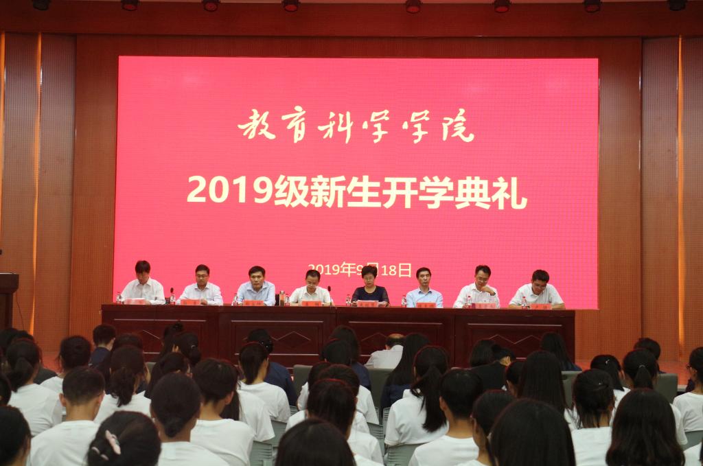 时间:2019-09-19 21:05:33 来源: 作者: 阅读: 次9月18日晚,信阳师范学院教育科学学院2019级新生开学典礼在逸夫楼报告厅隆重举行。院党委书记李辉,院长朱桂琴,课改所所长郑立坤,副院长陈天顺、郭勇,党委副书记李贵杰,院长助理岳鹏飞、卢强,各教研室老师以及2019级全体新生参加典礼。典礼由党委书记李辉主持。