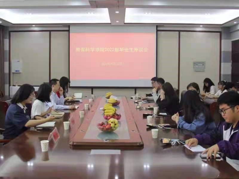 5月22日,教育科学学院2022届毕业生座谈会于教科402会议室召开。院党委副书记董银银,毕业生班主任张纪娥、宋晔、朱方、牛洁楠,专职辅导员杨艺卓,2022届毕业生和低年级学生代表参加会议。会议由牛洁楠主持。
