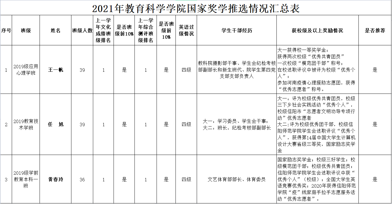 附:2021年教育科学学院国家奖学金推选情况汇总表