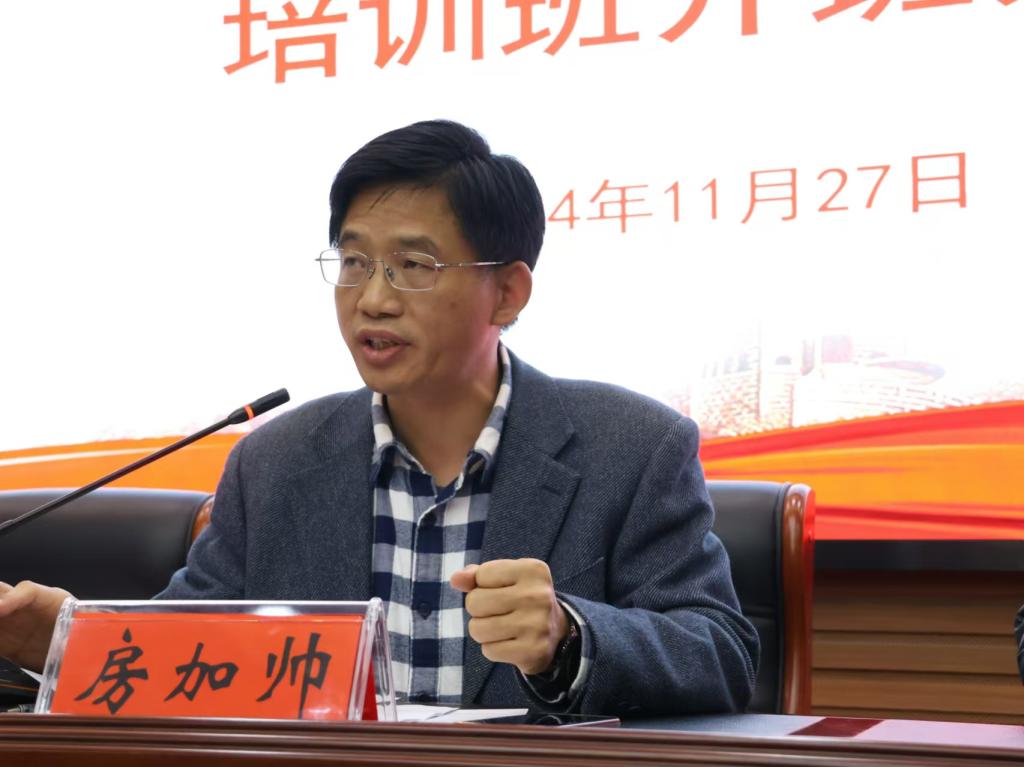 开班仪式结束后,房加帅以《共产主义理想与当代大学生精神》为题,讲授培训第一课。他从党的执政地位是历史的选择和现实的需要、共产主义理想及其时代精神、当代大学生的六种精神三个方面诠释了共产主义理想及其时代精神的重要性。