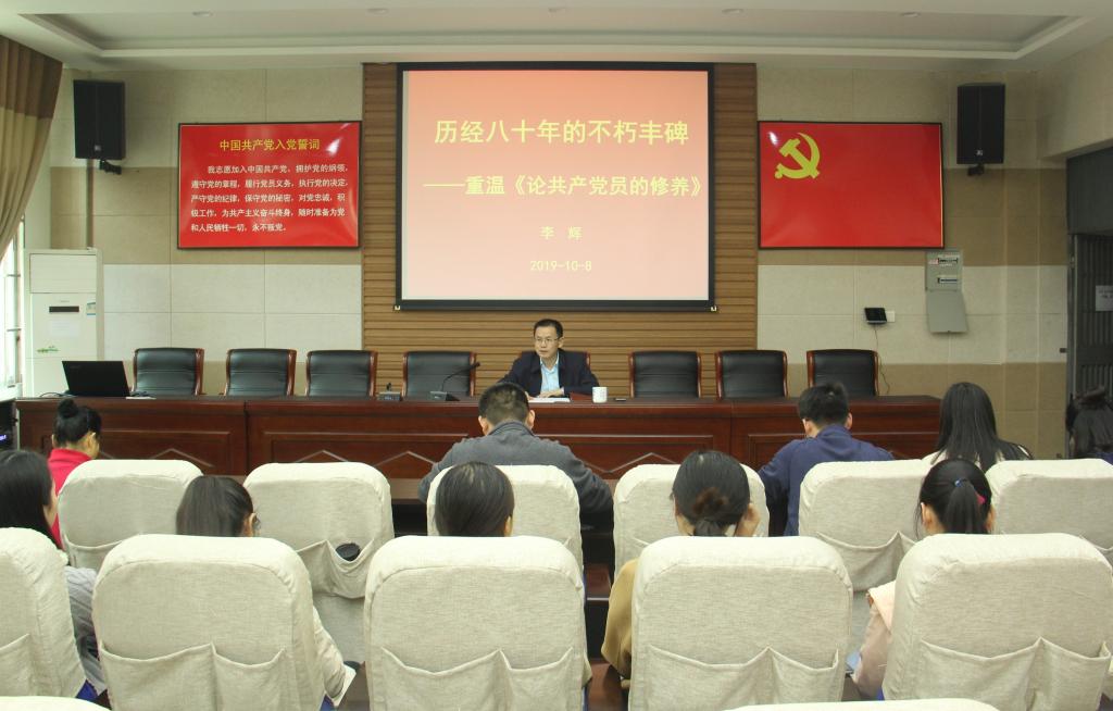 院党委书记李辉,在教科301会议室,为教工第三党支部和学生第一党支部讲授以“历经八十年的不朽丰碑”为主题的党课。他带领党员们学习了《论共产党的修养》一书,通过对该书的主要内容的解读,使党员们认识到作为一个优秀党员应具备的自身修养。他强调党员要结合当下的国情、党情,学习和继承党的优良品质,明确党的初心和使命,不断完善自己,积极发挥党员先锋作用。