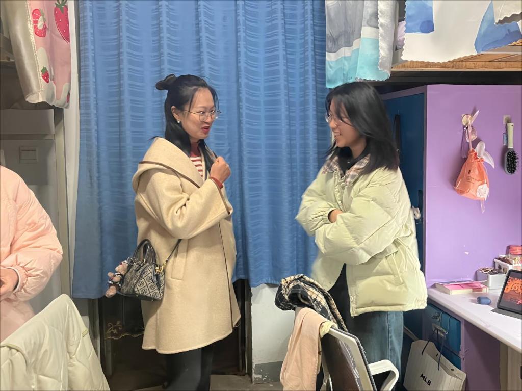 走访共分为三批次进行,走访过程中,辅导员与学生面对面谈心谈话,详细询问同学们的困难和诉求。对于同学们提出的关于学习、生活和校园安全管理等方面的困惑,老师们都耐心地进行了解答和反馈,并详细了解每名学生的学业规划安排和近期思想动态。与此同时,老师们仔细检查各宿舍情况,重点针对宿舍卫生、大功率电器的使用及宿舍通风等状况。对于存在用电安全隐患的宿舍,老师们立即指出并监督整改,同学们应积极配合迅速整改。最后提醒同学们加强防火、防盗、防诈骗以及用电、用水安全意识,鼓励同学们要相互关心、相互帮助,合理规划作息,共同营造安全舒适宿舍环境。