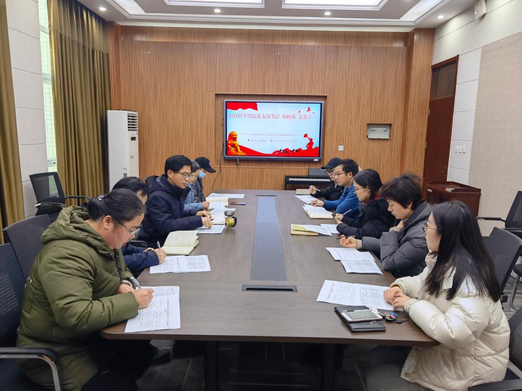时间:2021-12-27 16:27:00 来源: 作者:田园 阅读: 次为深入贯彻党的十九届六中全会精神,提升党支部书记抓党建能力,12月27日,教育科学学院在教科楼303会议室开展以“学习贯彻党的十九届六中全会精神,提升党支部书记抓党建能力”为主题的培训会,教科院党委书记房加帅和学院全体党支部书记参加会议,会议由学院专职组织员主持。