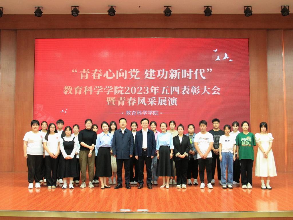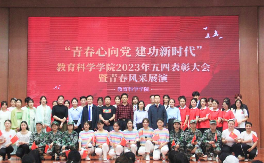 “青春力量”树典型。以五四青年节为契机,选树一批青年典型和青年集体,召开教育科学学院2023年“五四”表彰大会,对2022年度“两红两优”及“教科之星”获得者进行表彰。组建青春宣讲团,深入教室、教科大厅等公共场所,开展榜样宣讲活动,引领广大青年学生汲取榜样力量、锤炼优秀品格、永葆进取本色。