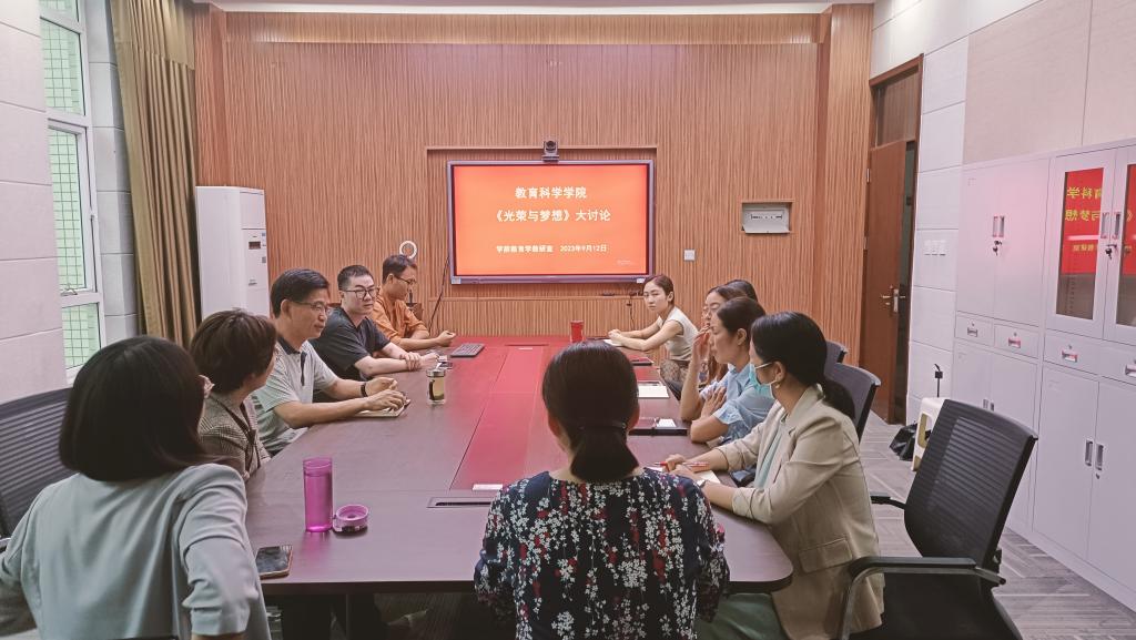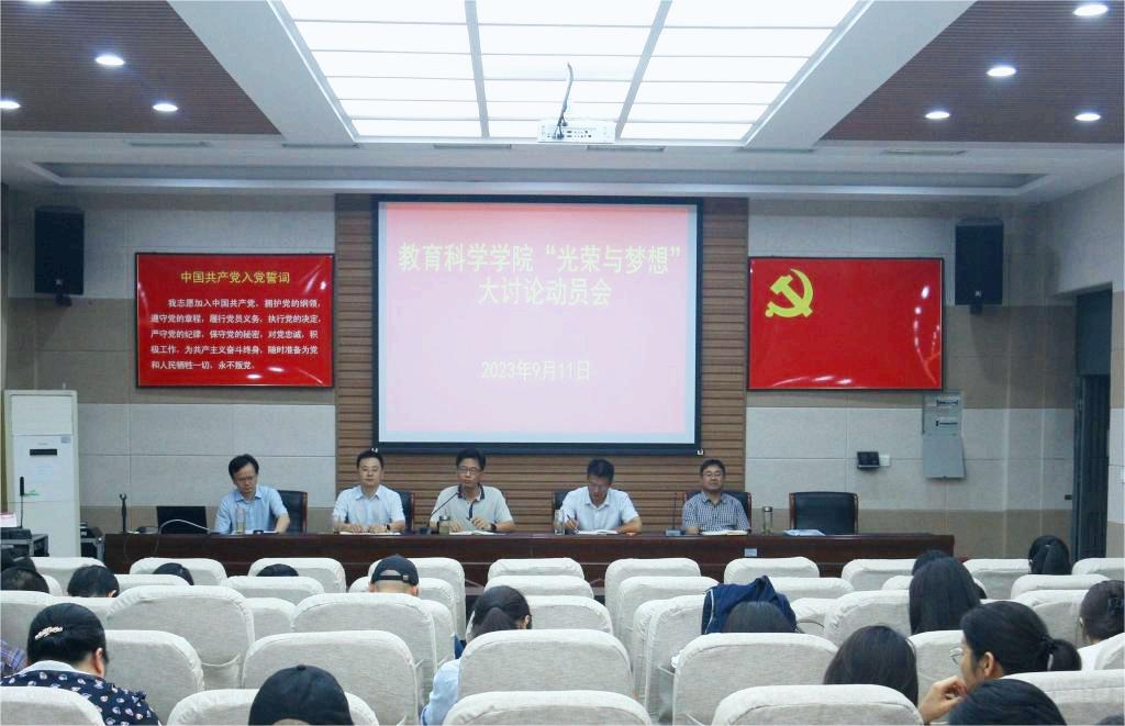 时间:2023-09-13 17:50:14 来源: 作者: 阅读: 次教育征程风正劲,千钧重任再起航。新学年新风貌,站在新的历史起点上,教育科学学院紧紧围绕学院师生思想、工作实际,深入开展了“光荣与梦想”大讨论。通过召开动员会、观看视频、专题党课、分组研讨等多种形式,将学习研讨活动推向深入。
