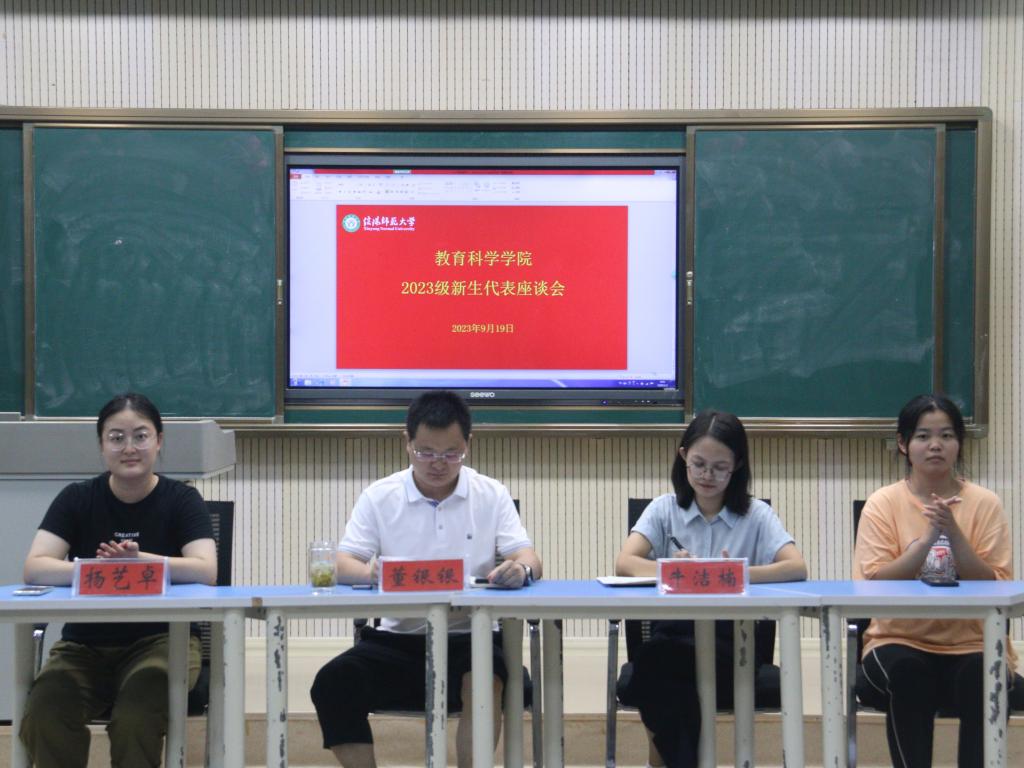 时间:2023-09-20 16:27:03 来源:教科院新闻宣传中心 作者:荆媛媛 阅读: 次9月19日,教育科学学院于教科楼205召开2023级新生代表座谈会。教育科学学院党委副书记董银银,分团委书记牛洁楠,专职辅导员杨艺卓,学生会执行副主席刘瑞杰及40名新生代表参加本次会议。