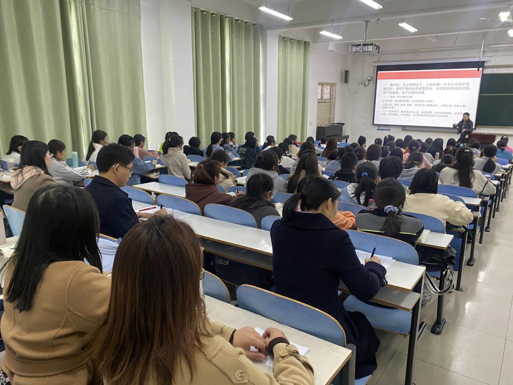 时间:2021-11-20 10:59:35 来源: 作者:宁焕焕 阅读: 次为进一步深化课堂教学改革,积极推动教学创新,教育科学学院开展了领导班子进课堂听评课活动。11月18日学前教育专业听评课教研活动,党委书记房加帅在系主任朱欲晓陪同下,前往教科楼108教室听评宁焕焕老师《教育学原理》课程,专业教师徐亮、余丽丽、吴彦缘、王从阳、王蓉等共同参加。该课程授课对象为2021级学前教育专业学生。