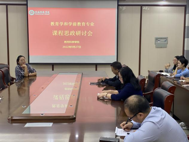 时间:2022-09-28 17:20:04 来源: 作者:宁焕焕 阅读: 次为深化课程思政教学改革,更好地推进课程思政建设,发挥课堂立德树人的主渠道作用,9月27日下午,教育学与学前教育学专业在教科楼402会议召开课程思政研讨会,会议由学前教育学系主任朱欲晓主持,所有专任教师参加了这次活动。