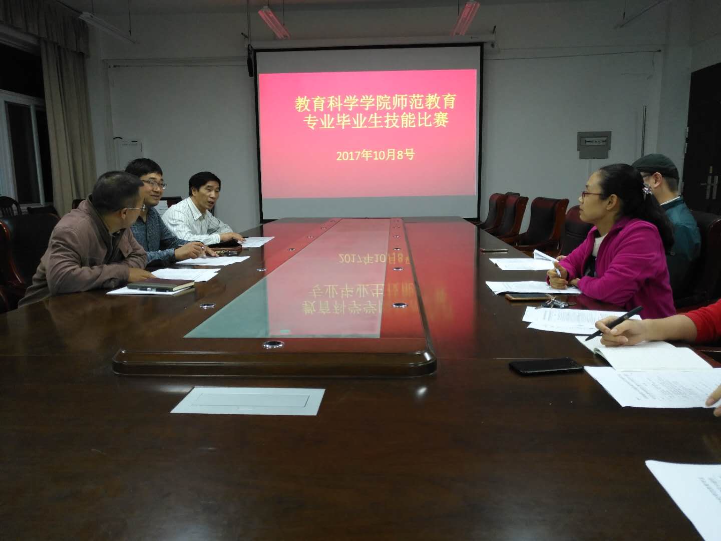 时间:2017-10-09 15:14:56 来源: 作者: 阅读: 次为提高师范教育专业毕业生教学技能和实践能力,全面提高师范生培养质量,培养“四有”好教师,2017年教育科学学院师范教育专业毕业生教学技能大赛于10月8日晚在402会议室拉开了序幕。教育科学学院相关领导、院督导专家、教研室主任、指导教师和学生参加了本次比赛。比赛内容包括说课、答辩、特长展示3个环节。参赛选手为此次比赛做了精心准备。在说课环节,选手语言表达准确生动,教学过程设计合理,教学方法独特新颖;在答辩环节,选手回答问题紧扣主题、语言流畅、思路敏捷;在才艺展示环节,选手准备充分、精神饱满、着装得体、才艺展示与教学活动相联系。比赛结束后,评委对此次比赛作了精彩点评。本次比赛本着“公开、公平、竞争”的原则评出了学生一、二等奖和指导教师一、二等奖。