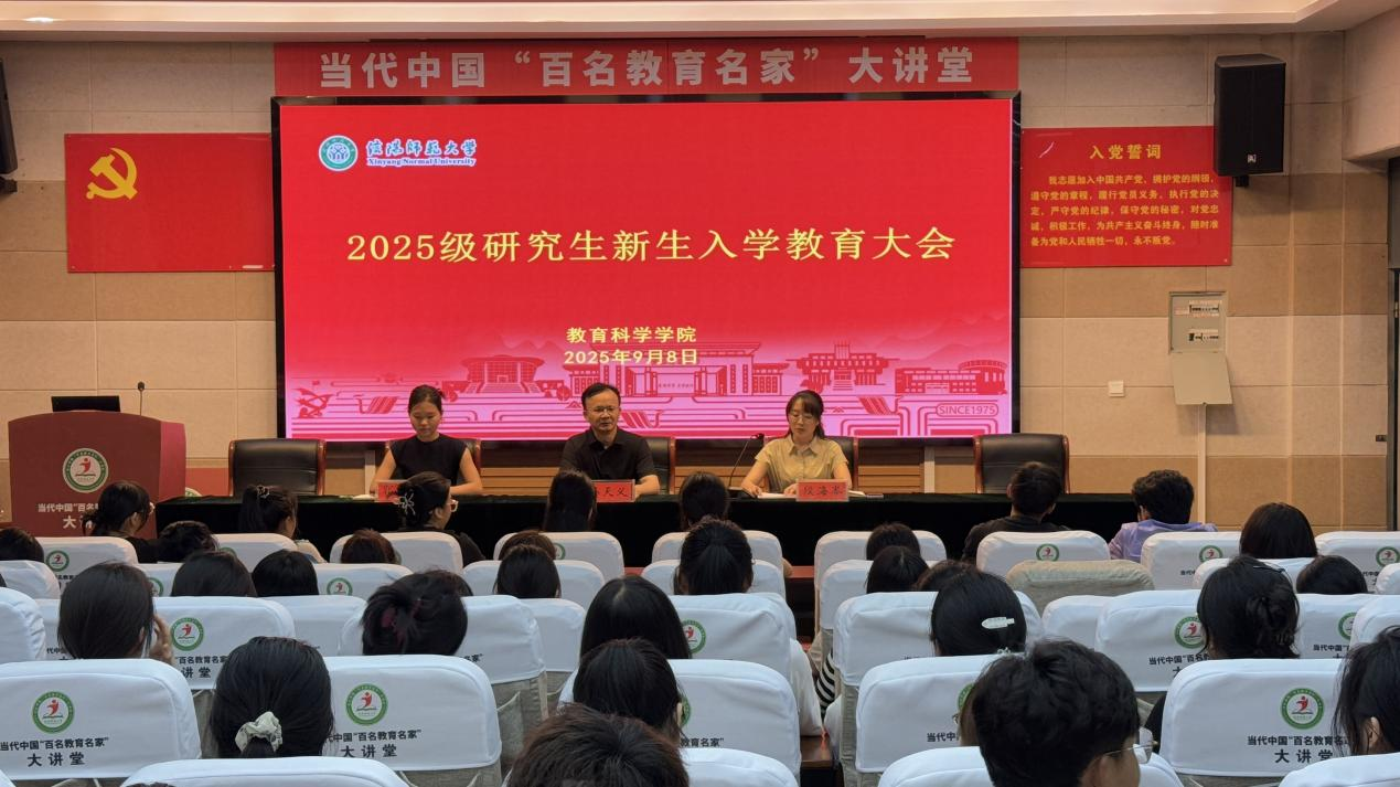 时间:2025-09-09 09:20:58 来源: 作者: 阅读: 次2025级研究生新生入学教育大会于2025年9月8日在教科楼301会议室召开,会议由研究生科研与教学秘书段海岑主持。教育科学学院副院长孙天义、研究生辅导员郭祎以及2025级全体研究生参加了此次会议。