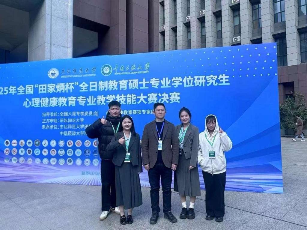时间:2025-10-20 11:14:47 来源: 作者: 阅读: 次10月18日至19日,2025年全国“田家炳杯”全日制教育硕士专业学位研究生心理健康教育专业教学技能大赛在东北师范大学举行。我院选派参赛的4名硕士研究生全部获奖。其中,刘俊锴同学荣获一等奖,杨夏怡、李佳欣两位同学分获三等奖,刘雯雯同学获得优秀教学设计奖。