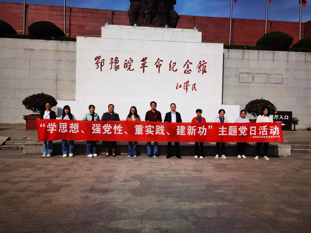 时间:2023-04-18 09:10:05 来源: 作者: 阅读: 次为扎实开展好“共产党员先锋号”活动,带动全体教职工凝心聚力,促进教科院更快更好发展。4月15日,教育科学学院教工第三党支部“共产党员先锋号”扬帆先锋服务队前往鄂豫皖革命纪念馆开展学“思想、强党性、重实践、建新功”主题党日活动。院党委书记房加帅参与此次活动。